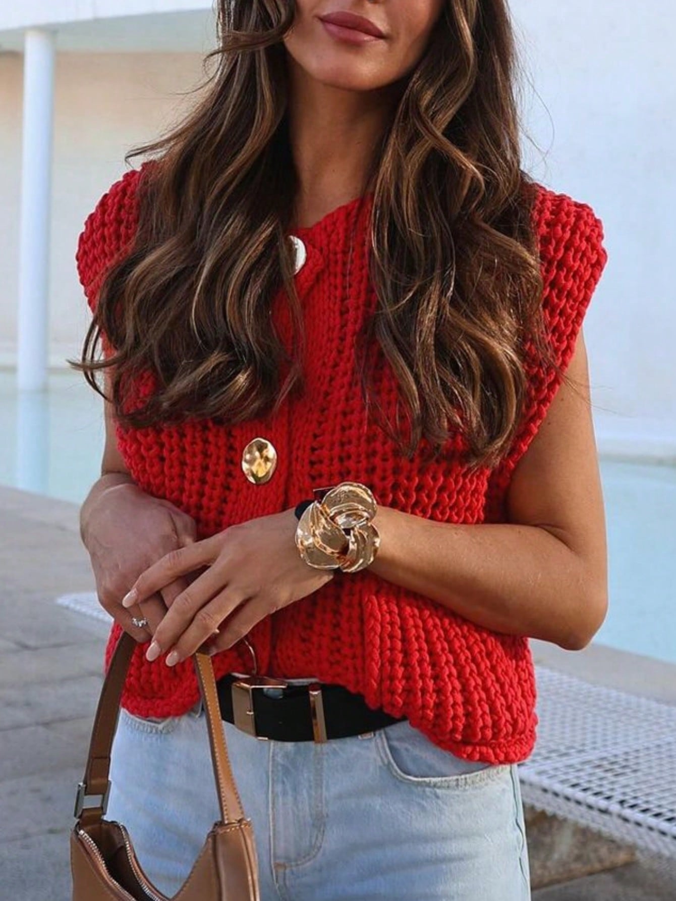 Color & Texture: The red hue offers a vibrant, eye-catching texture, while the knit fabric feels soft and suitable for layering.